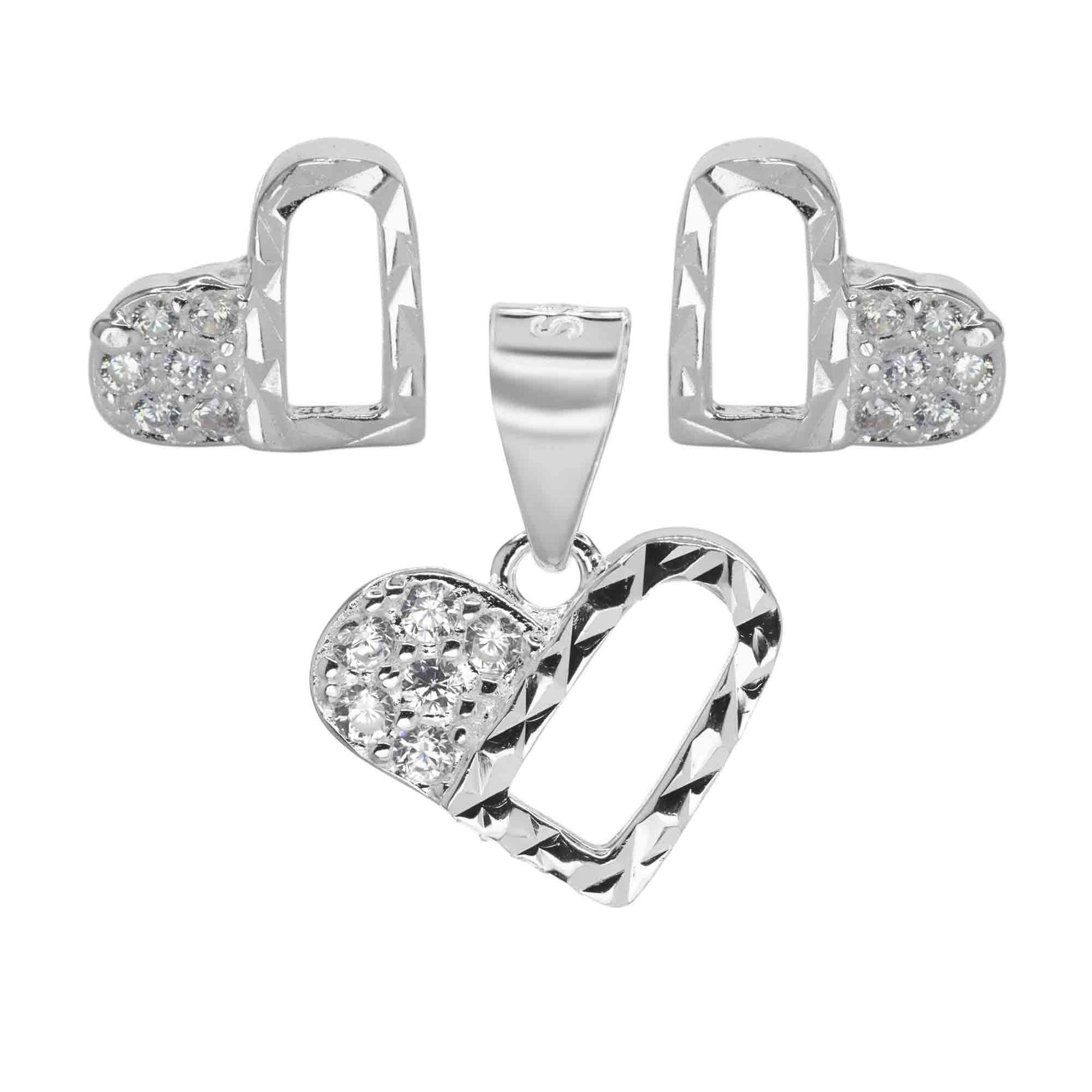 Conjunto de Plata 925 Corazones Biselados con Circones.