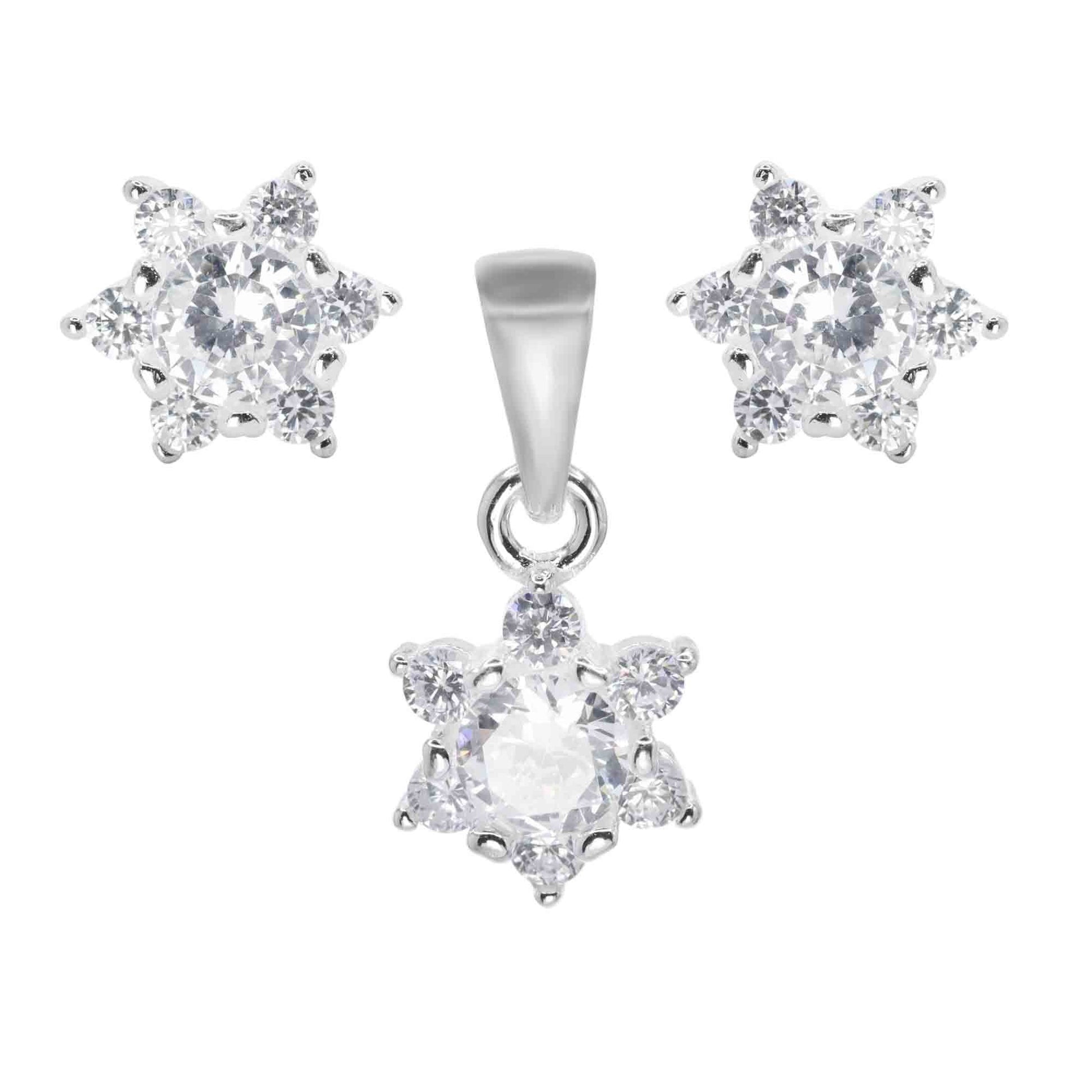 Conjunto de Plata 925 Estilo Flor con Circones. Peso 2,6 Gramos Aprox.