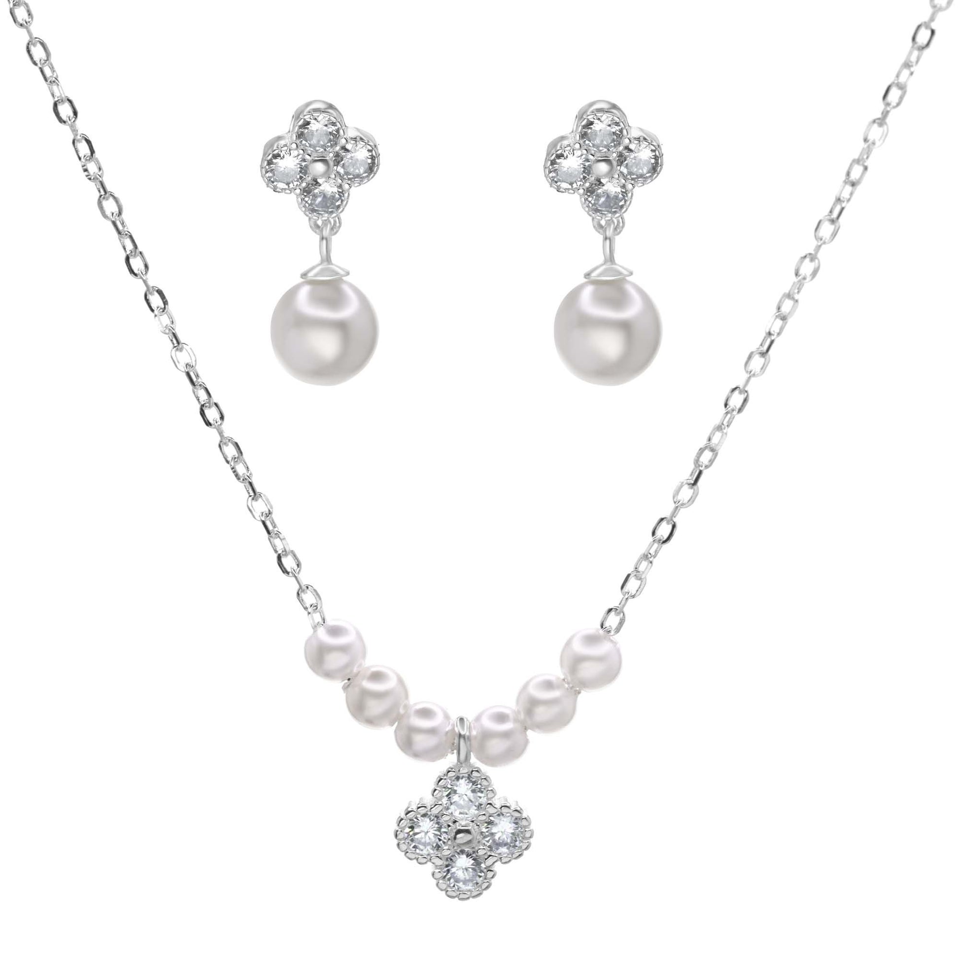 Conjunto de Plata - Flor de Circones con Perlas Imitación
