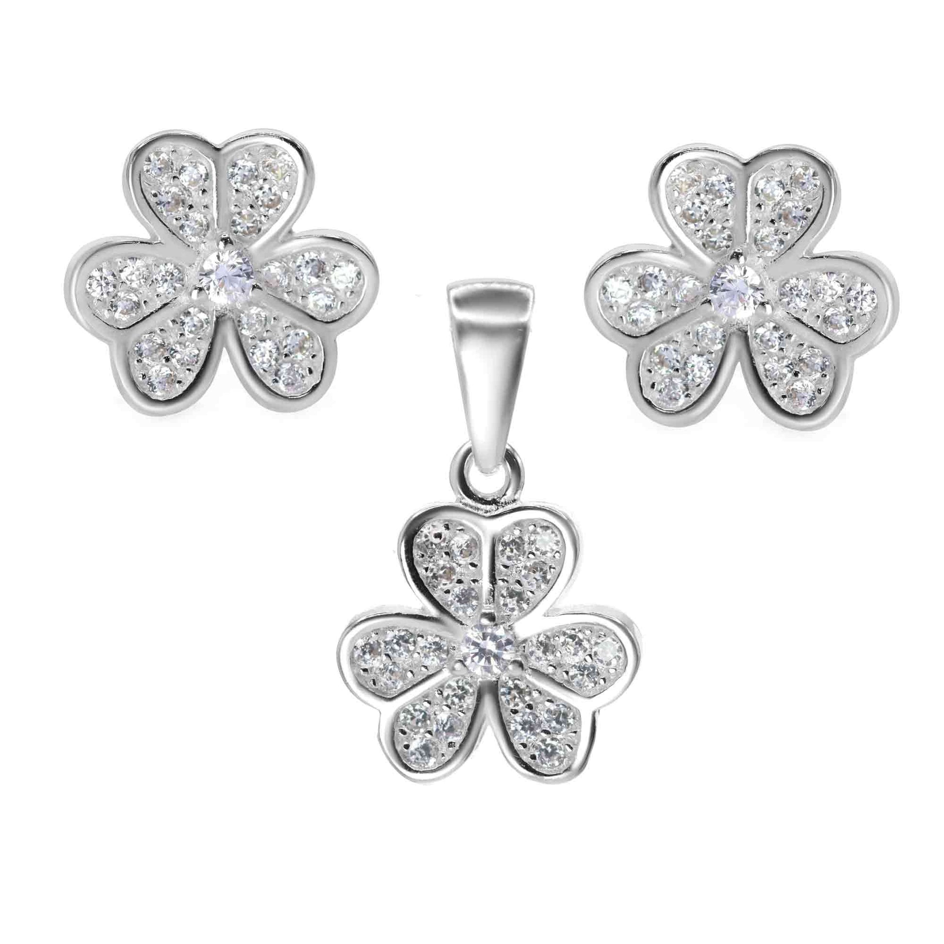 Conjunto de Plata 925 Flores con Pétalos de Circón. Peso 2,3 Gramos Aprox.