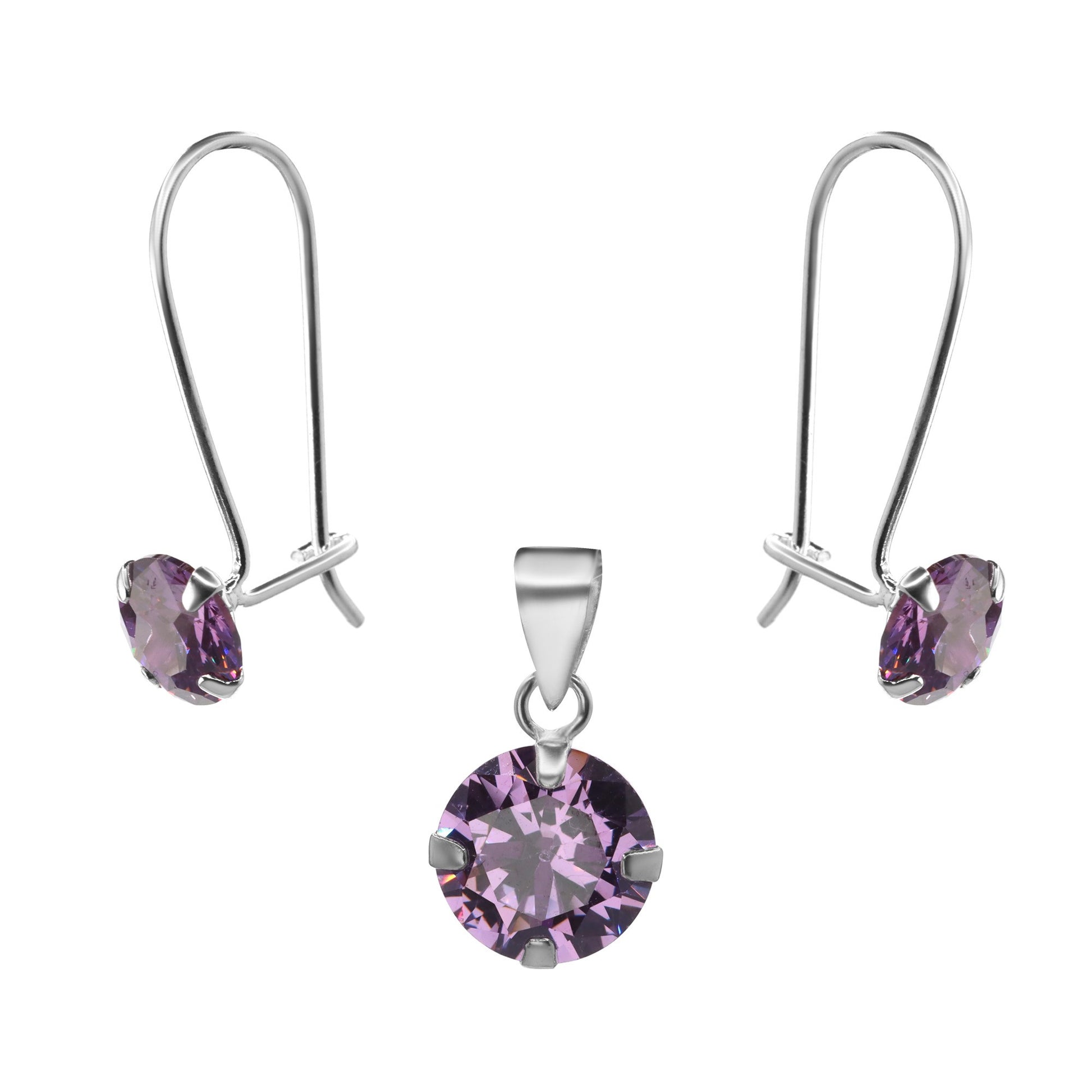 Conjunto de Plata 925 Estilo Gancho con Circones Lavanda.