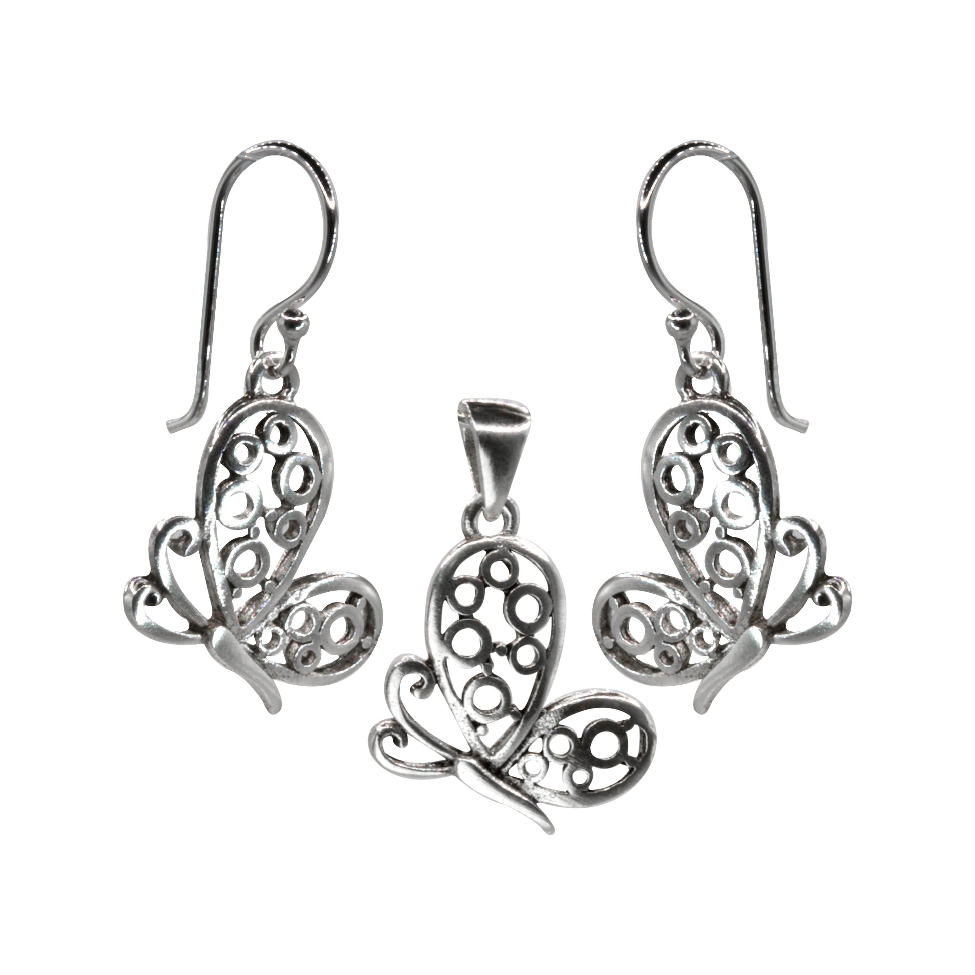 Conjunto de Plata 925 Diseño Mariposas Caladas.