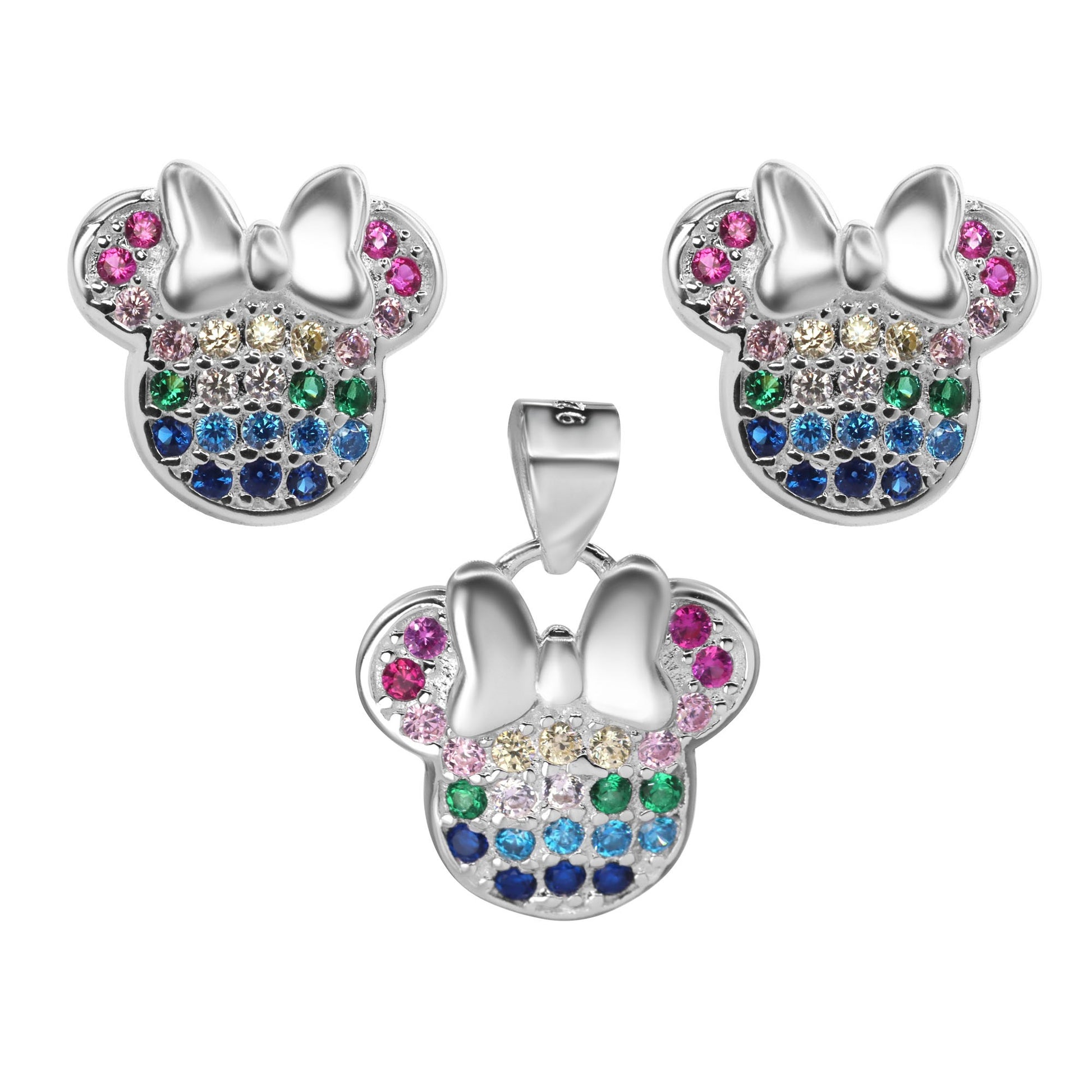 Conjunto de Plata 925 Diseño Minnie Mouse con Circones de Colores.
