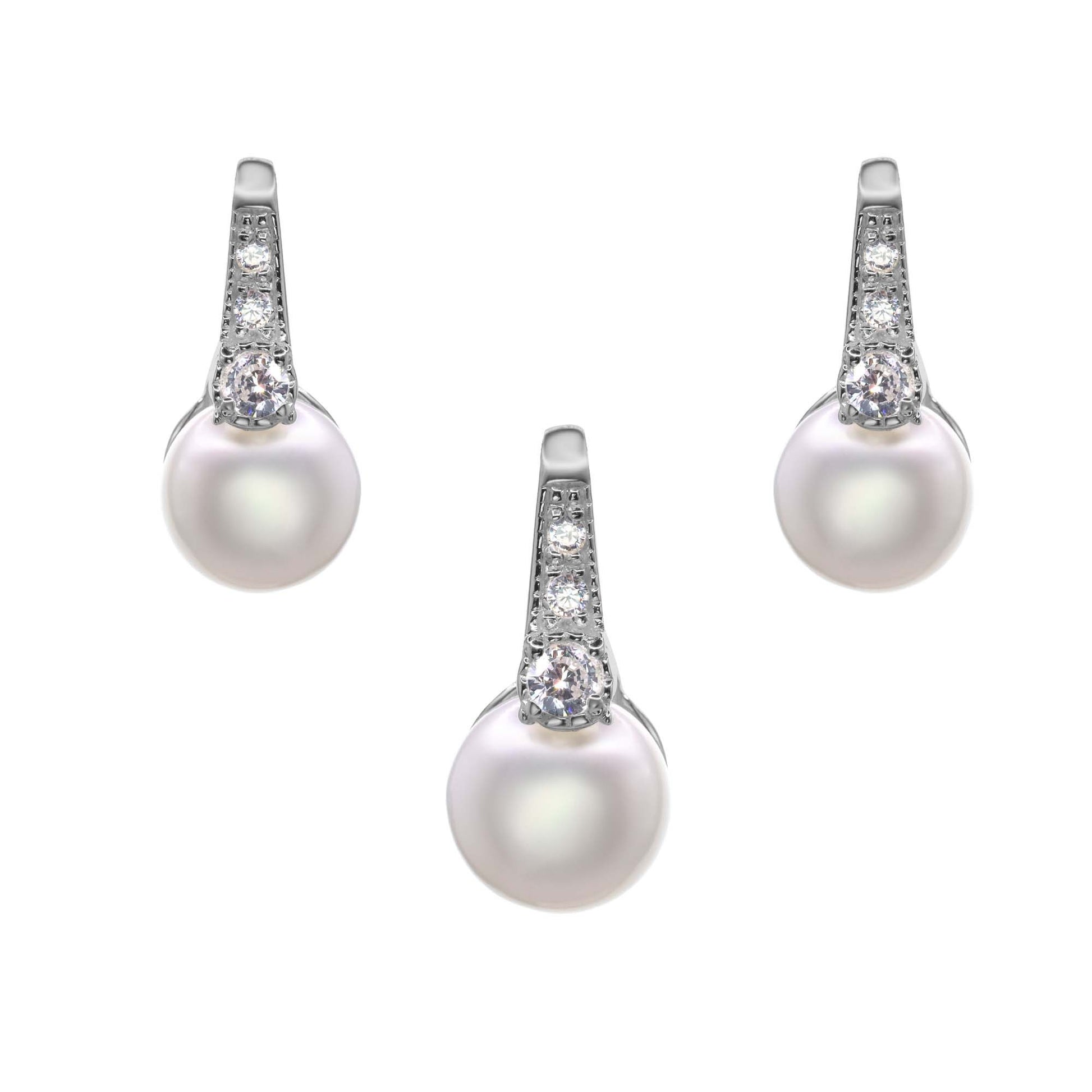 Conjunto de Plata 925 Modelo Perlas de Río con Varitas de Circones.