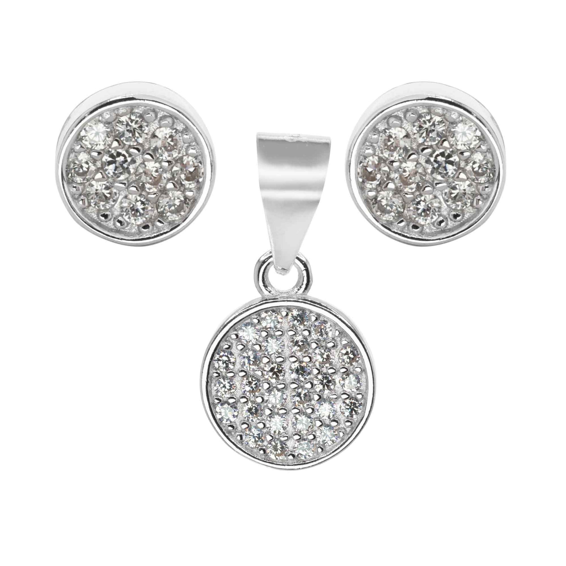 Conjunto de Plata 925 Rodinada Diseño Placa con Circones.