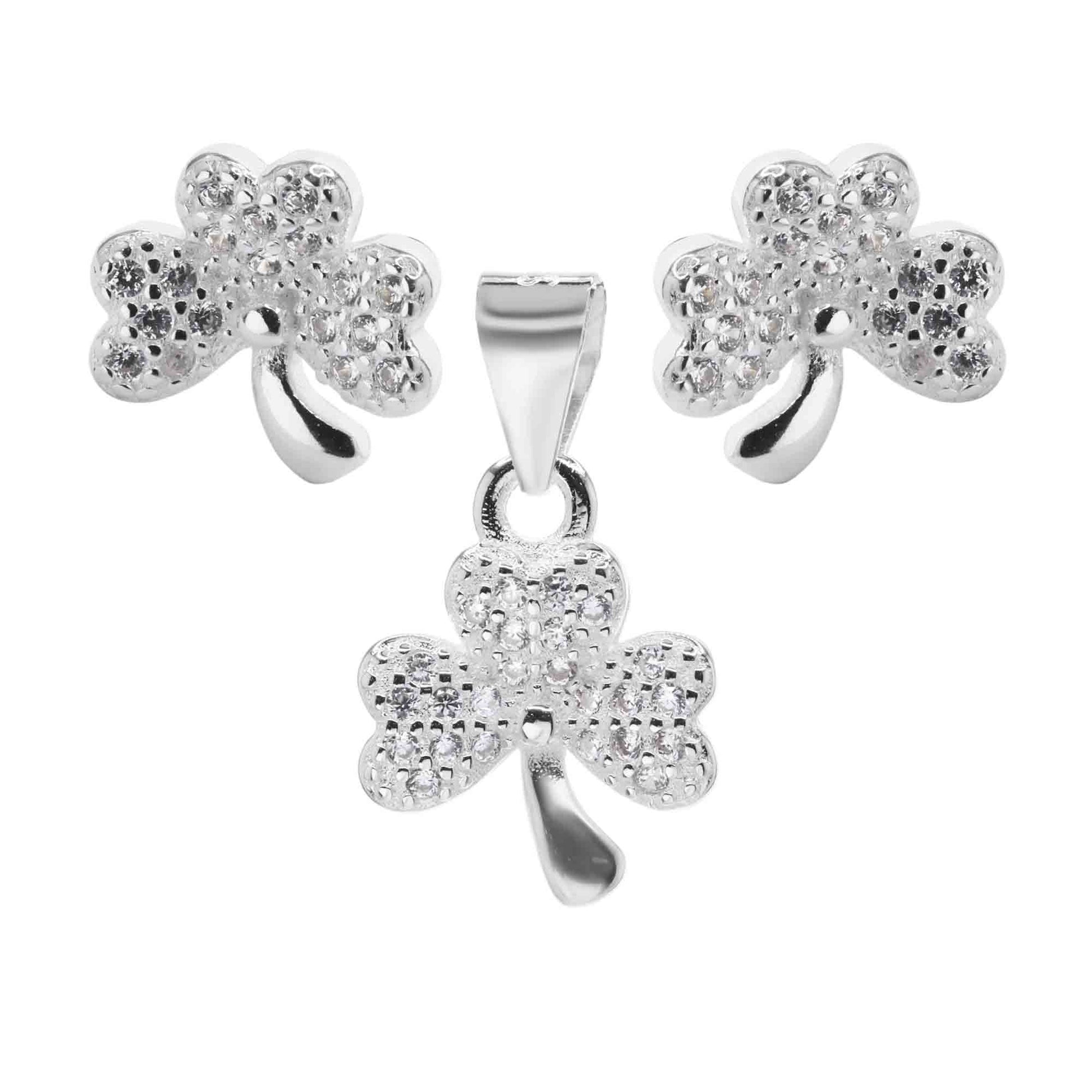 Conjunto de Plata 925 Diseño Trébol con Circones.