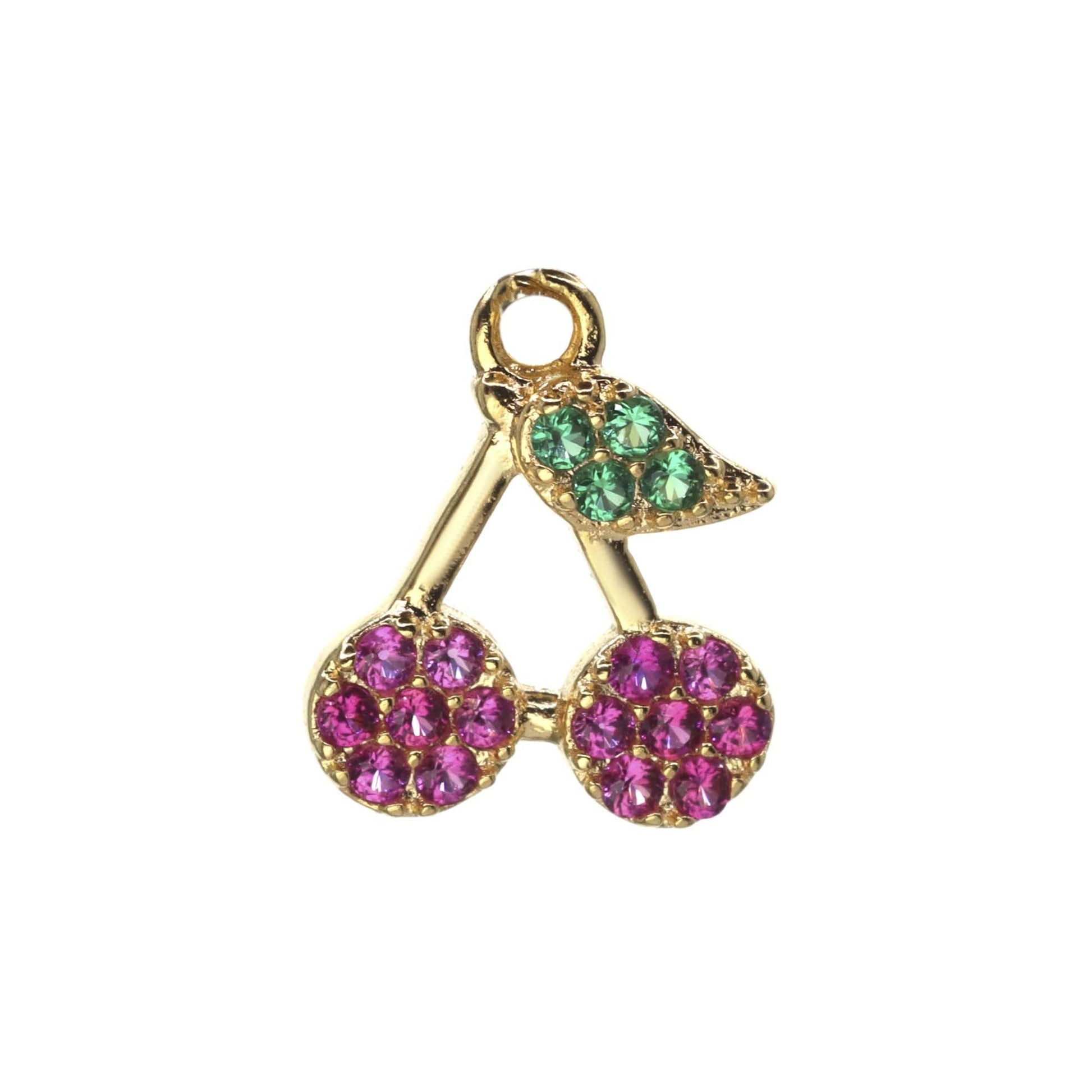 Insumo Enchapado en Oro Diseño Cerezas de Circones Magenta