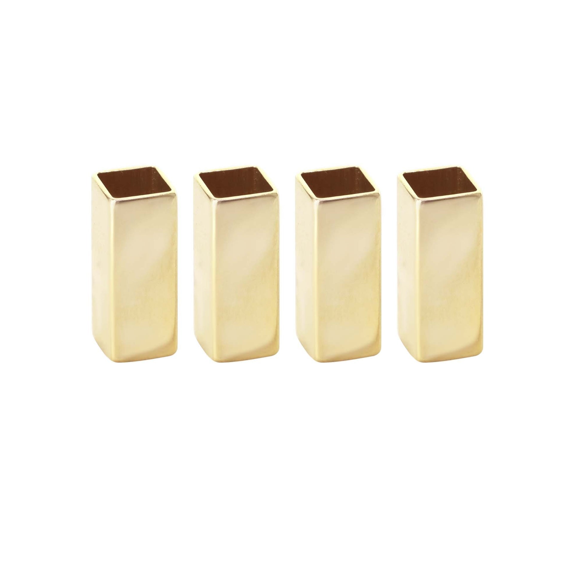 Set de cuatro canutitos cuadrados lisos enchapados en oro, perfectos para crear joyas con un estilo moderno y elegante. Su diseño geométrico los hace ideales para combinar con otras piezas o usarlos solos.
