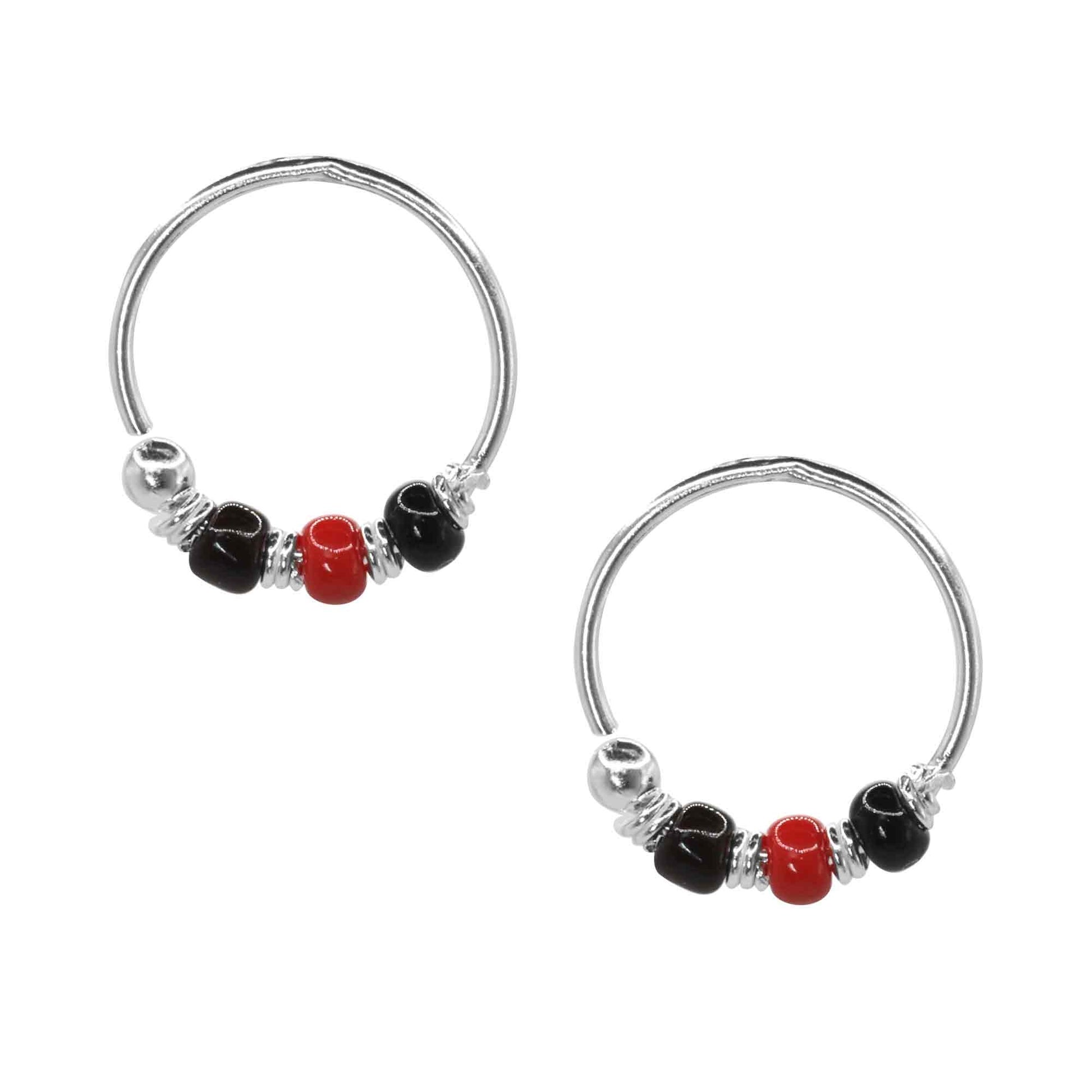 Piercing de Plata Mostacillas Rojas y Negras 10 mm