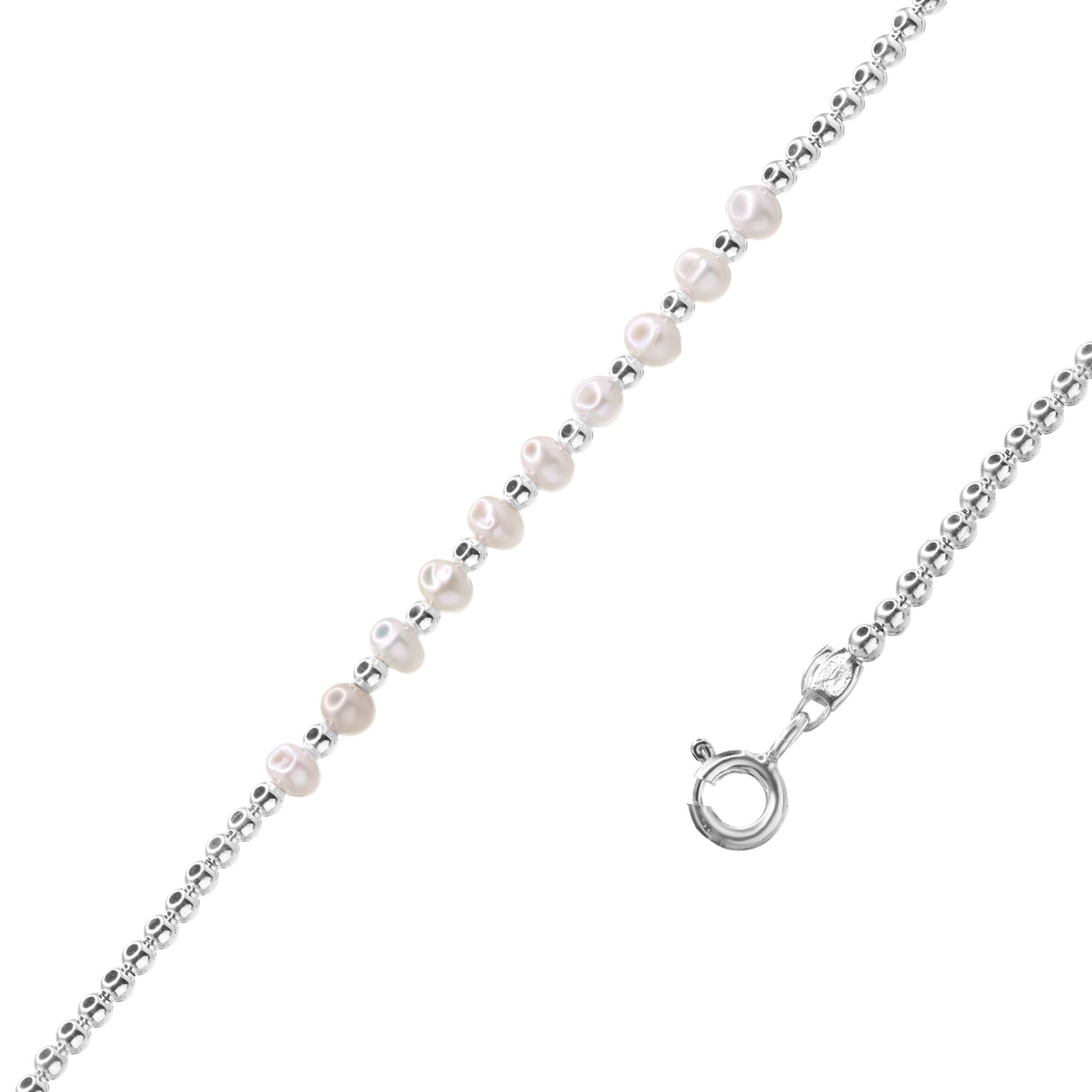 Pulsera de Plata 925 Esferas Lisas y Perlas.