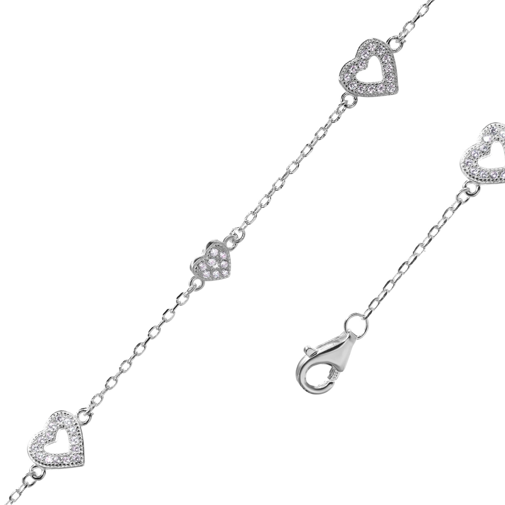 Pulsera de Plata 925 Figuras Y Relieve de Corazón con Circones.