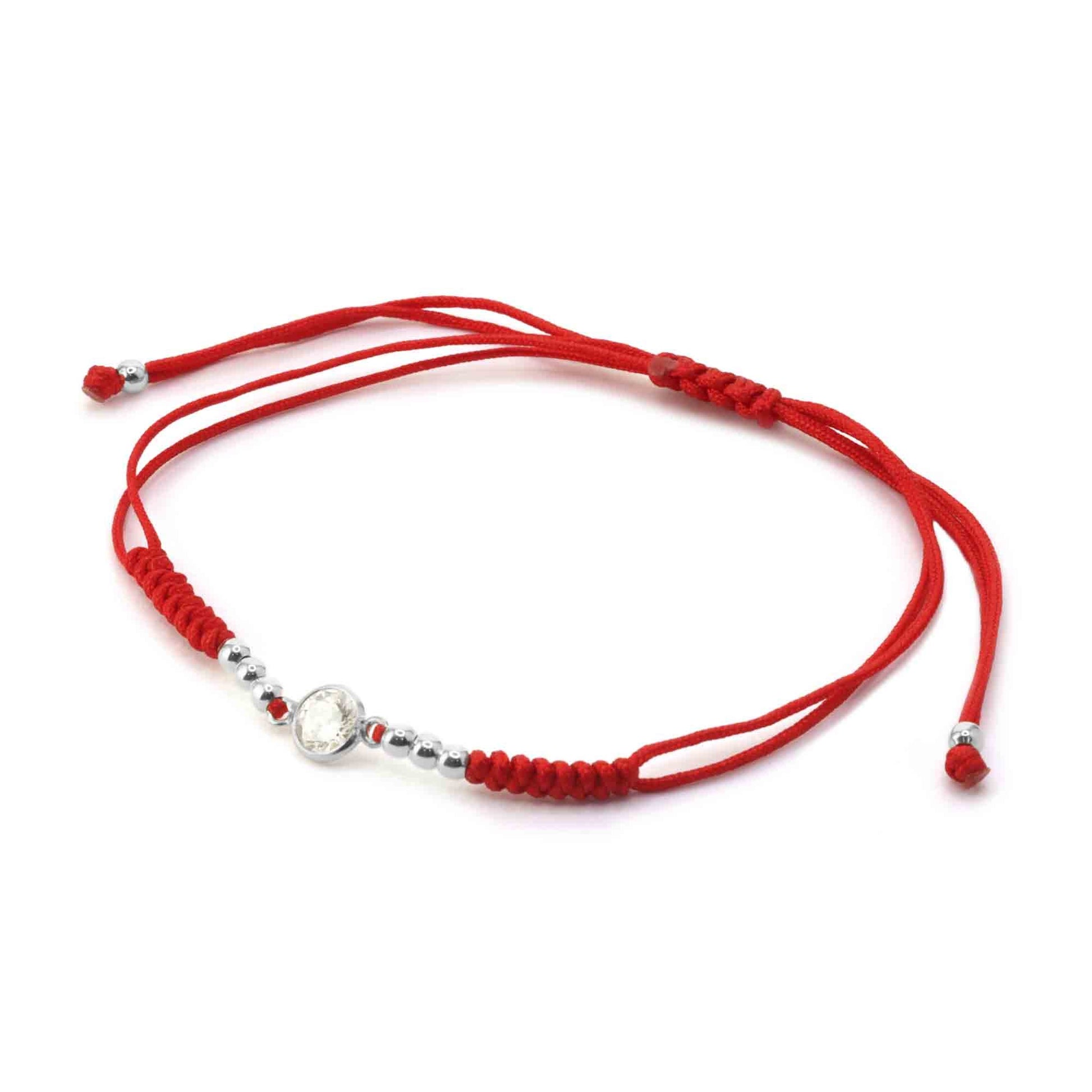 Pulsera de Plata Hilo Rojo con Esferas Lisas y Circón