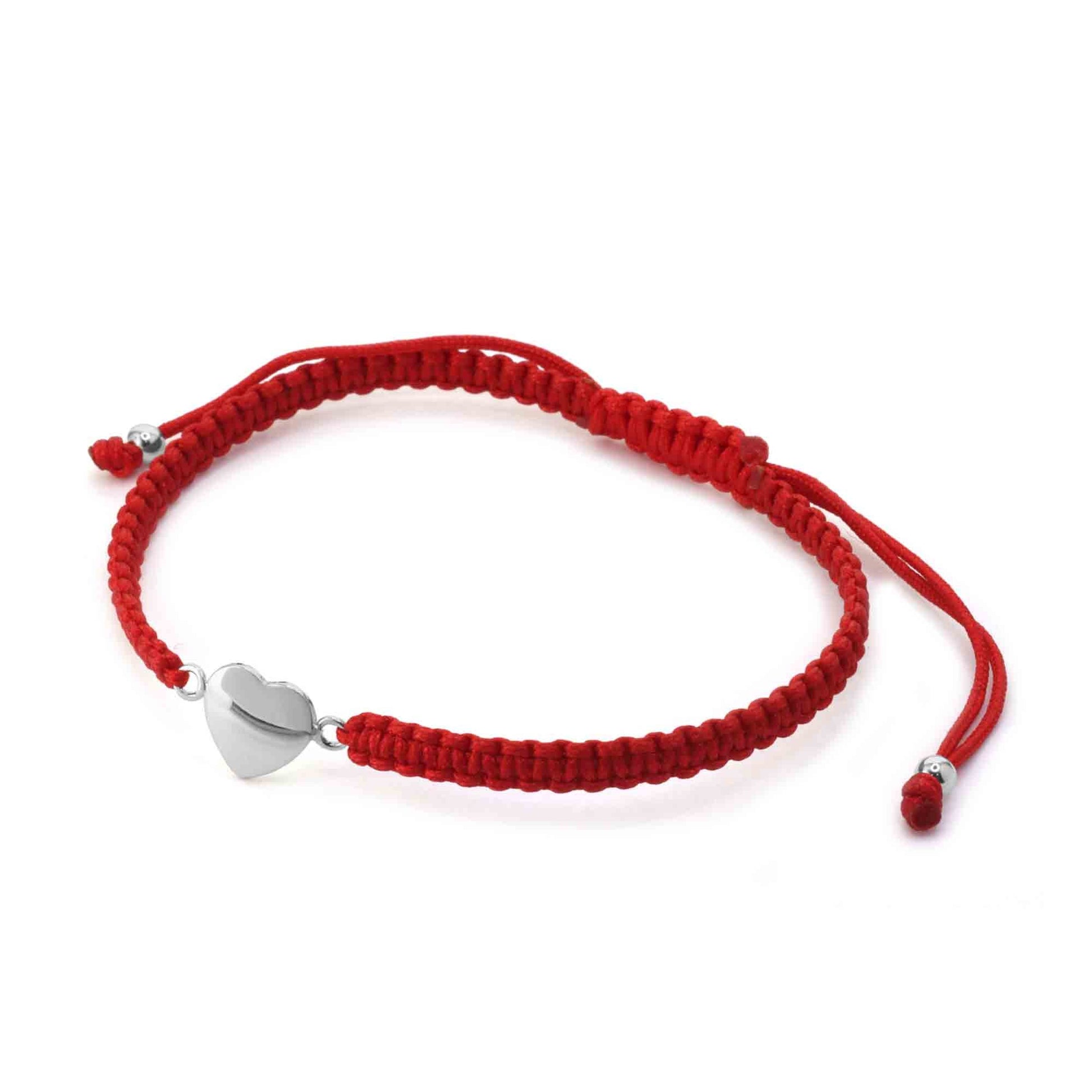 De macramé rojo con placa de corazón lisa en plata 925. Una opción tierna y simbólica para personas que buscan regalar algo con significado.