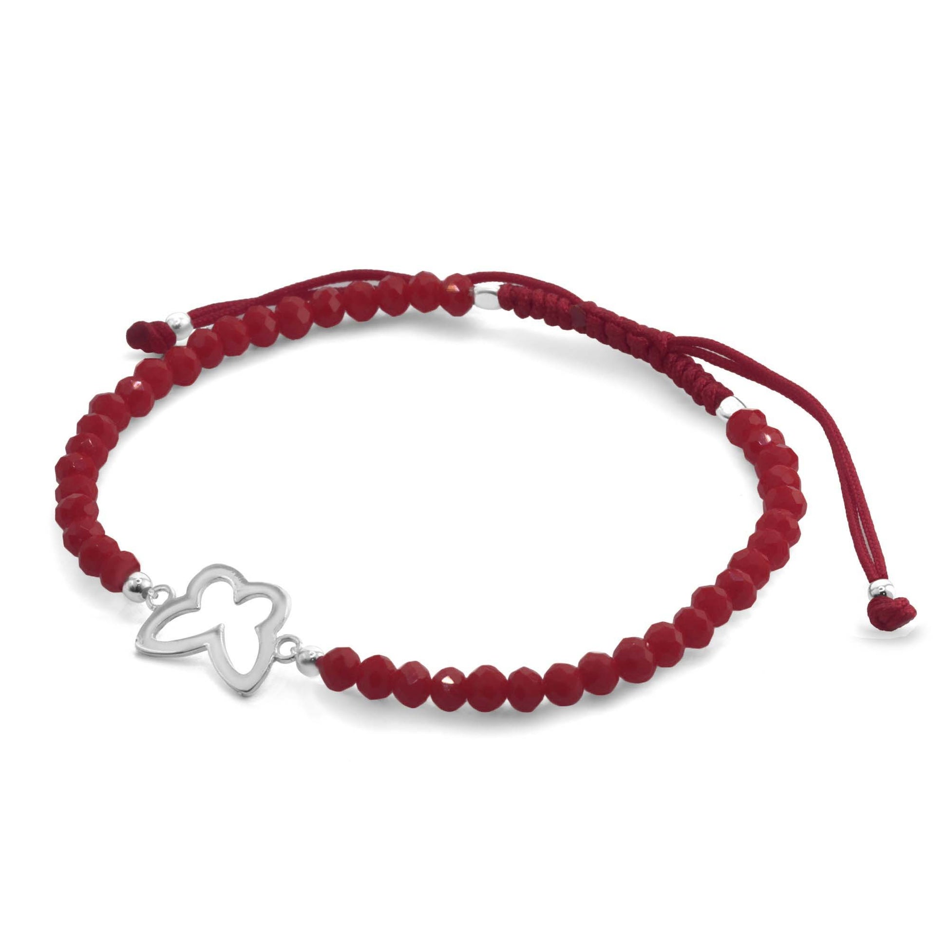 Pulsera de Plata Macramé Roja de Mariposa y Cristales Rojos