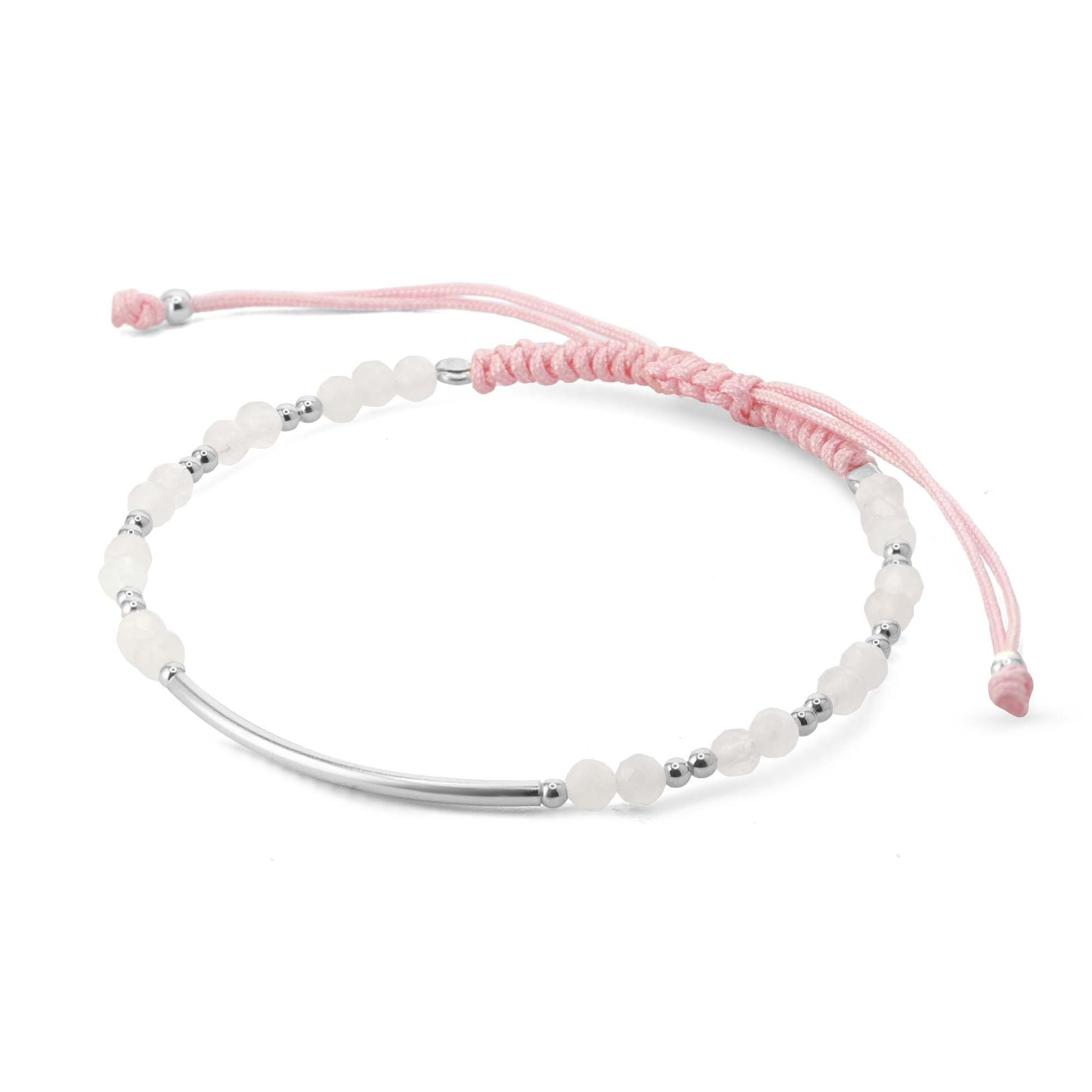 Pulsera de Plata Macramé Rosa Tubular con Cristales y Esferas , Ajustable