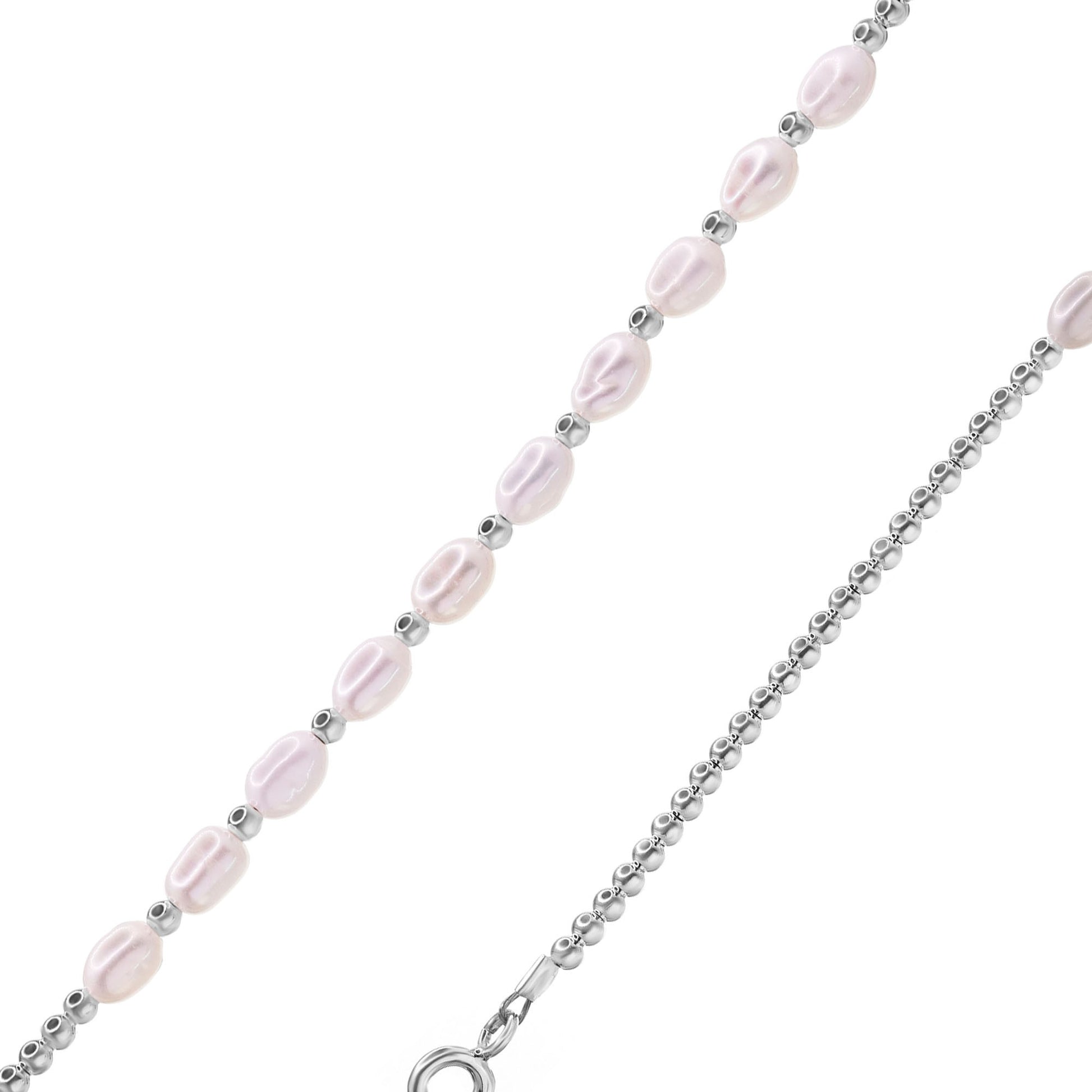 Pulsera de Plata Perlas de Río con Esferas Lisas