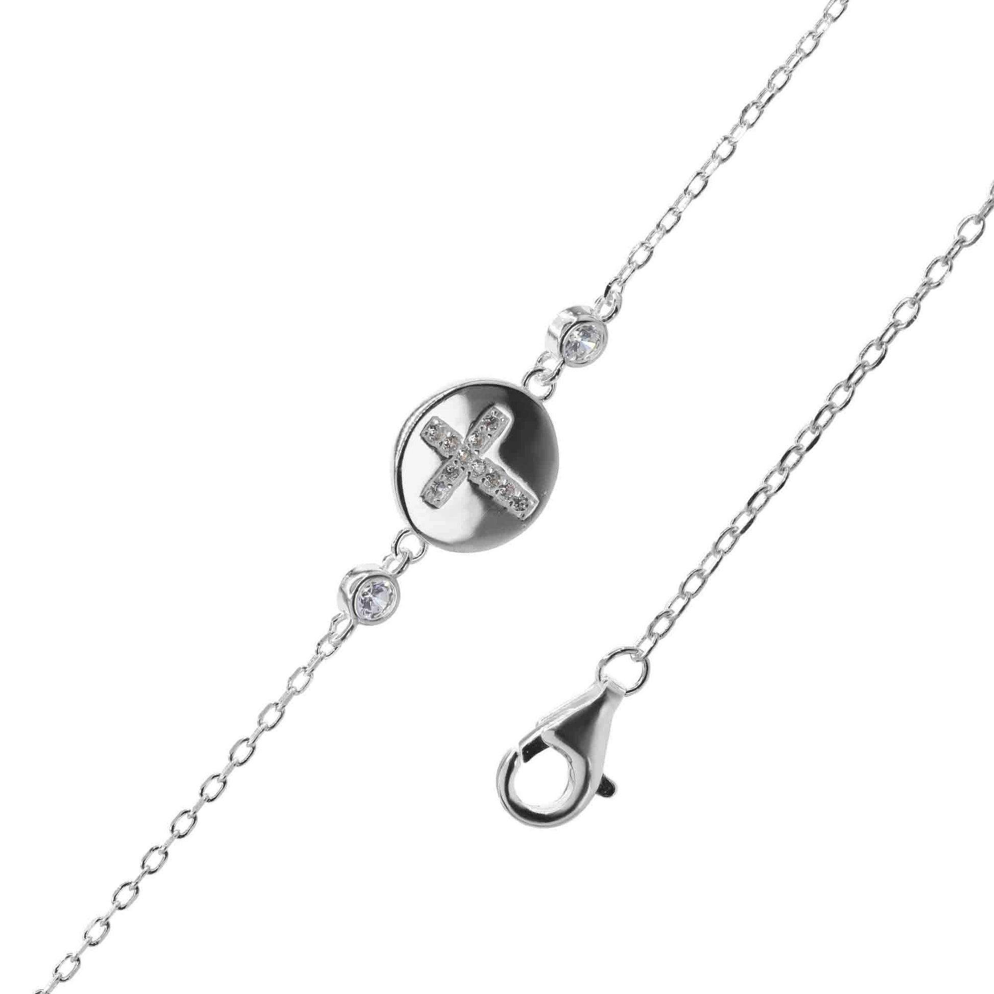 Pulsera de Plata Placa con Pequeña Cruz de Circones