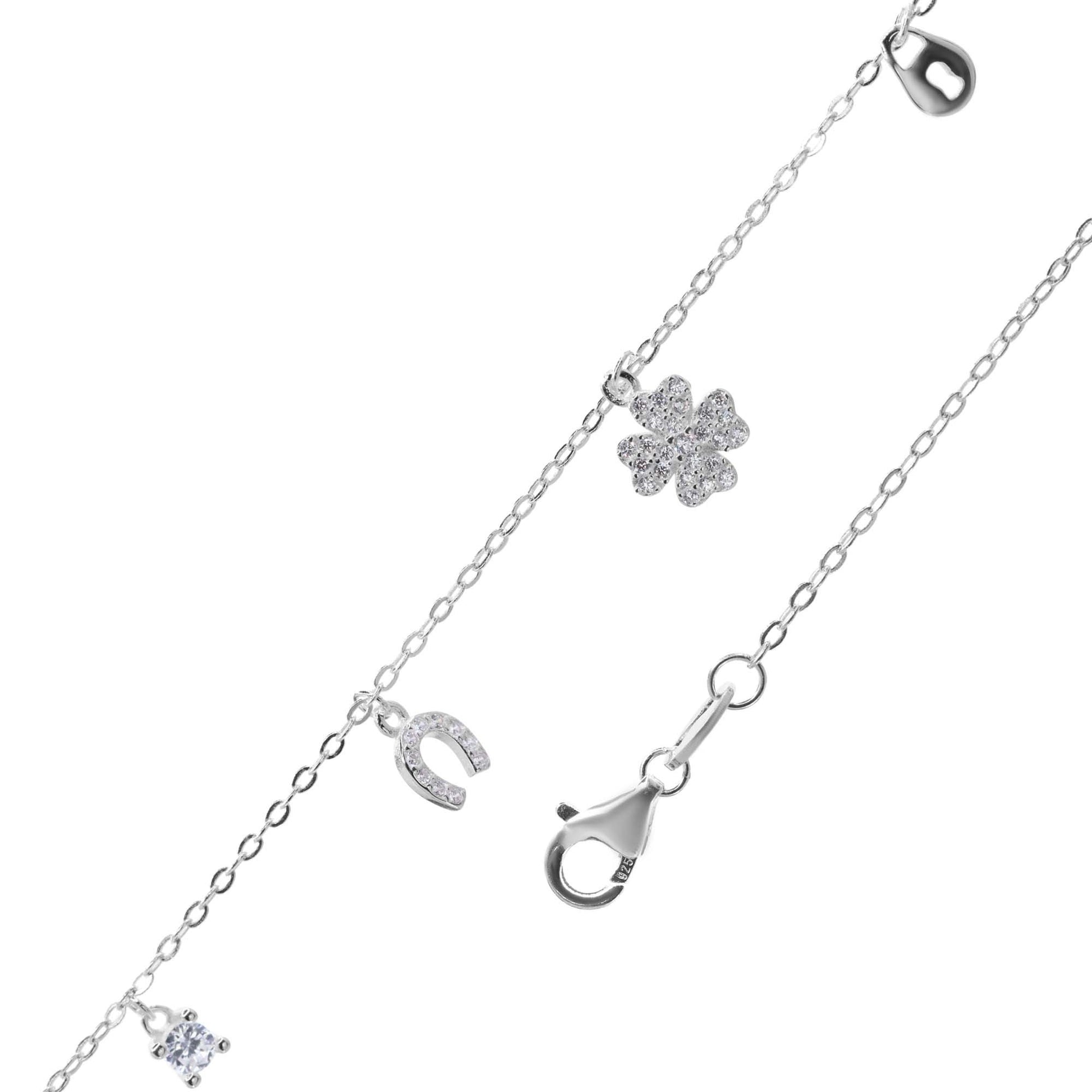 Pulsera de Plata 925 Trébol-Candado-Ranura y Circones.