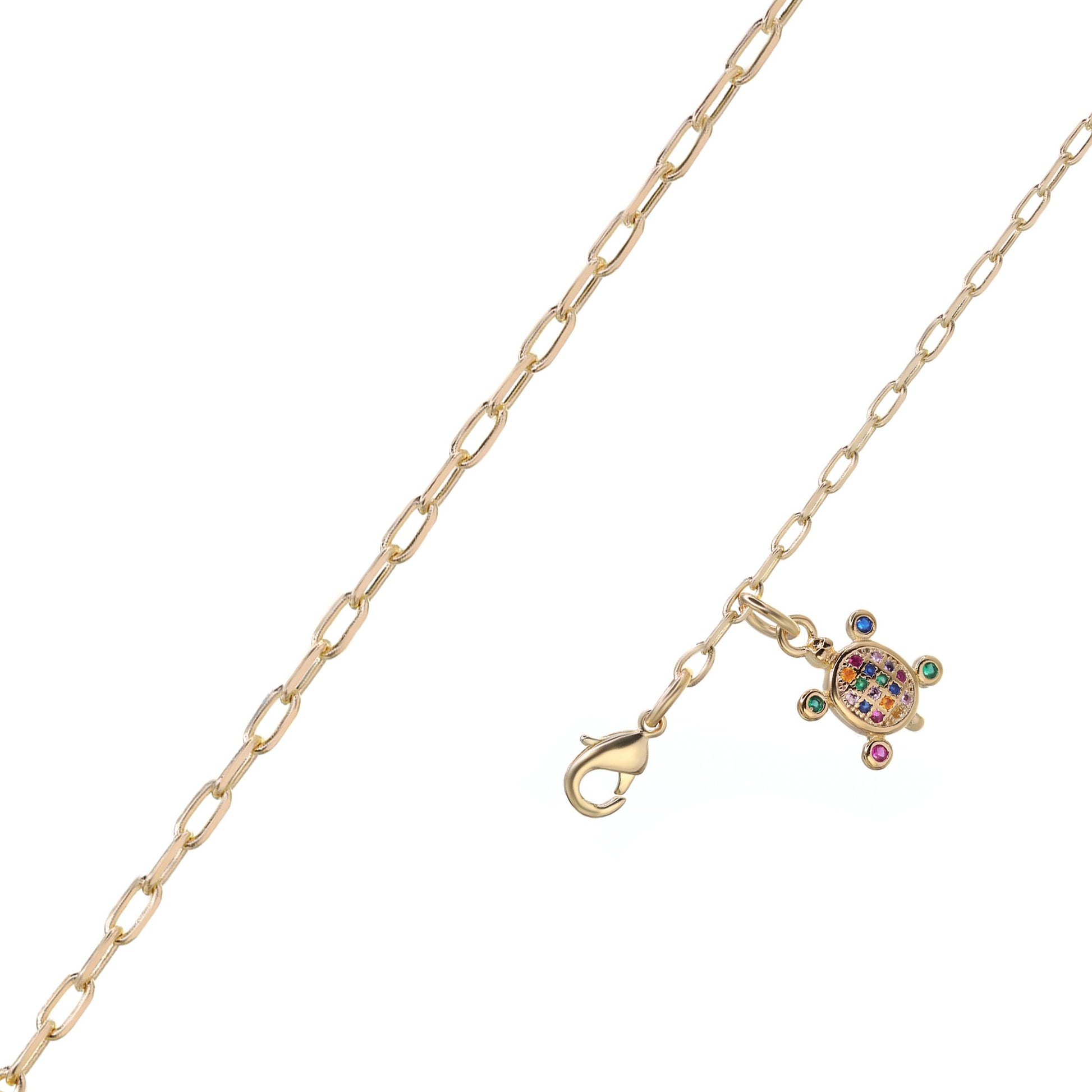Tobillera Enchapada en Oro Dije de Tortuga con Circones de Colores